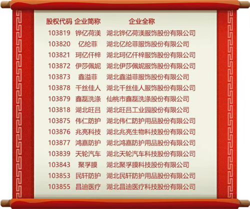 2月9日,“仙桃纺织服装板块”启动,来自湖北省仙桃市的15家企业在武汉股权托管交易中心集体鸣钟、挂牌开市。